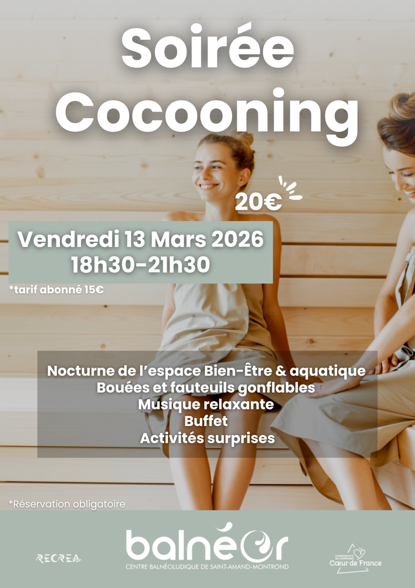 Bassin sportif : 10:00 - 20:00 | Bien-être : 10:00 - 20:00 | Bassin ludique : 10:00 - 19:00