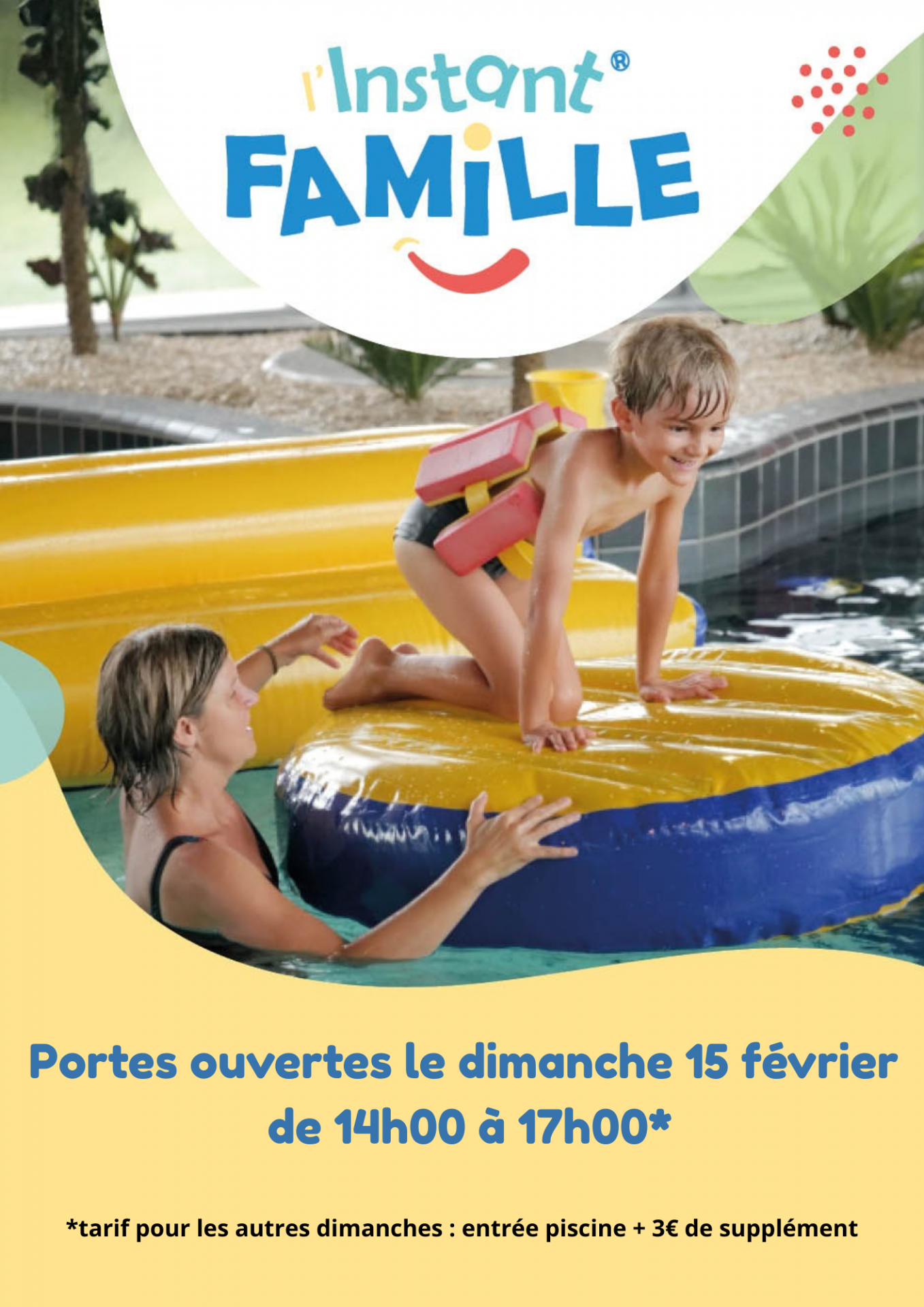 Bassin ludique : 09:00 - 13:00 et 14:00 - 18:00 | Bassin sportif : 09:00 - 13:00 et 14:00 - 18:00 | Bien-être : 10:00 - 13:00 et 14:00 - 18:00