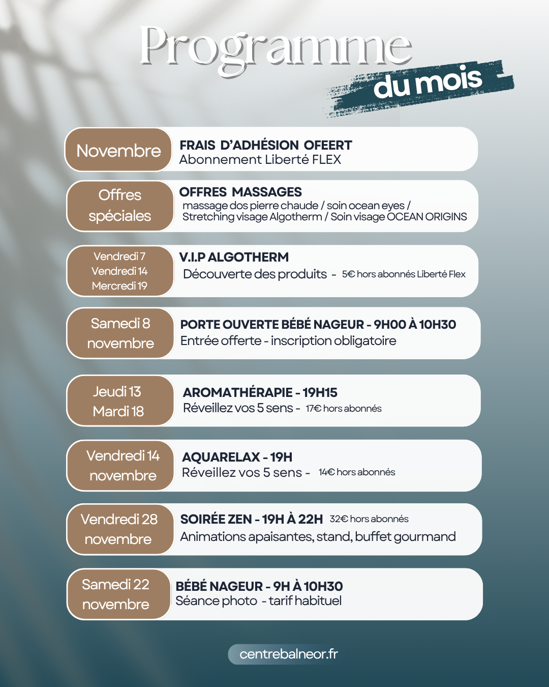 Prenez du temps rien que pour vous dans l'espace bien-être de votre centre aquatique Balnéor. Vous retrouverez tous les indispensables de la détente : sauna, hammam, tisanerie et cabine de massage...